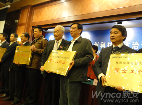 瀏覽量:8478 11月16日,在杭州舉行的2010年“中國(guó)科學(xué)院—杭州科技合作洽談會(huì)暨第七屆京滬杭(國(guó)際)高科技產(chǎn)業(yè)化交流活動(dòng)”中,杭州市委常委、副市長(zhǎng)沈堅(jiān)等市相關(guān)領(lǐng)導(dǎo)為“杭州院士專家工作站”授牌,公司總經(jīng)理季誠(chéng)建和公司首位駐站的中國(guó)工程院沈寅初院士一起鄭重的接過了院士專家工作站的匾牌。