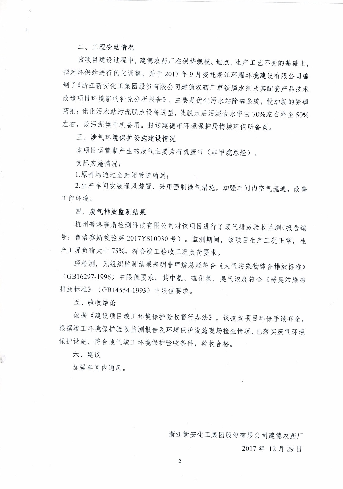新安化工集團股份有限公司建德農藥廠草銨膦水劑及其配套產品技改項目進入驗收公示