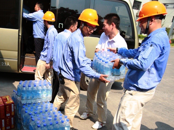 此次高溫慰問是集團總部黨委組織的。集團總部黨委75名黨員自發捐款近六千元,購買了近40箱加多寶、100箱鹽汽水,給堅守一線作業的員工送上一份降溫飲料,帶去一份清涼。在草甘膦搬遷項目組,項目組胡江廠長表示感謝。他說,一線員工會將感動化為行動,盡早完成各項調試工作,早日生產出優質的草甘膦產品。